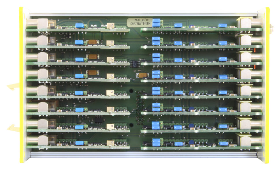 MSI-8 has a very flexible modular design. Preamplifiers and shaper, timing filter amplifiers are pcb modules mounted on a common main board. They can be chosen individually for each channel. This gives maximum flexibility for multi channel setups with different detectors.