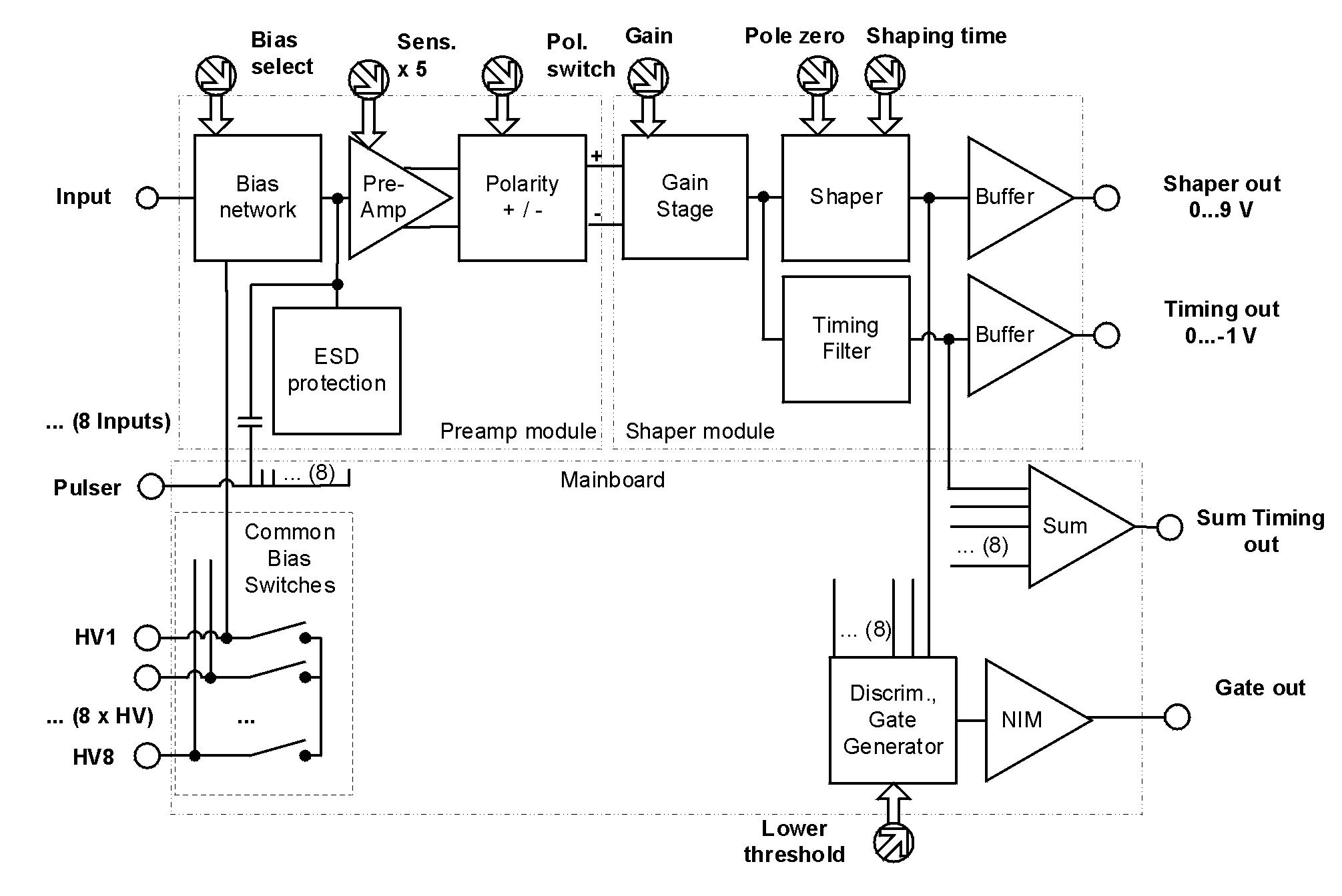 - Preamplifier and shaper modules individually selectable